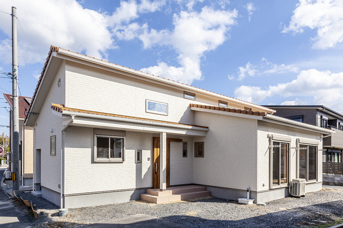 真っ白い外観が可愛いナチュラルモダンな家。|住まいの事例集 間取りが分かる画像が多数掲載 徳島の家づくりは